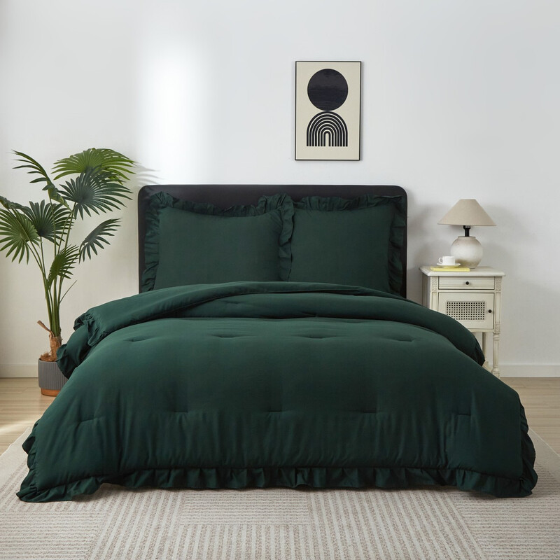 Meeallhome Comforter Set Vintage Ruffle Bed Set 135*200cm/50*75cm*1 dark green