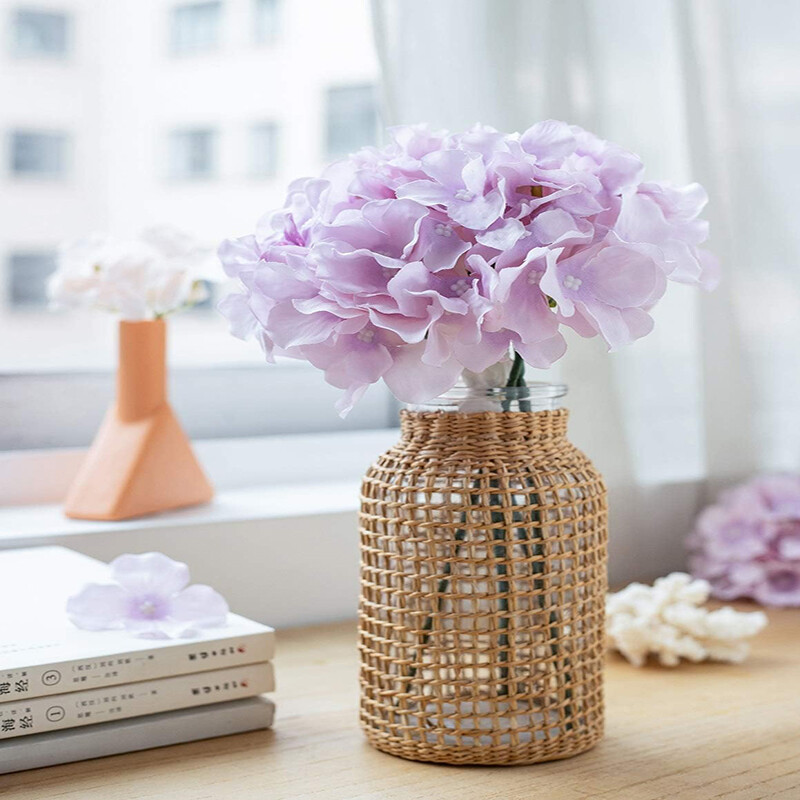 YueJia Têtes de fleurs d’hortensia en soie artificielle, 13 pouces/33 cm, lot de 5, à longues tiges, pour centres de table de mariage, bouquets, décoration florale DIY et décoration intérieure (violet)