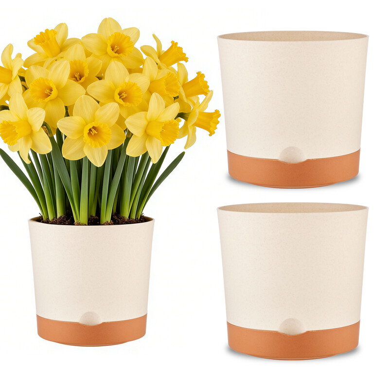 MADLANDFlower pot set: 3-piece set with a diameter of 16.5cm, self-priming beige flower pot, equipped with a tray