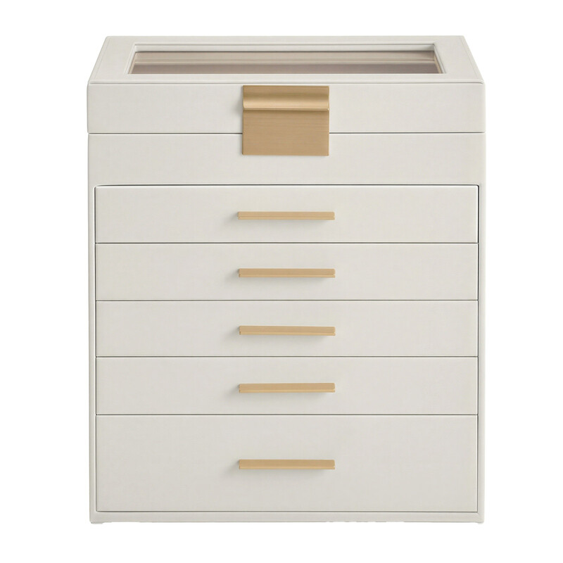 SONGMICSHOME Schmuckkasten mit 6 Ebenen, Schmuckbox mit 5 Schubladen, Deckel aus Glas, für große Schmuckstücke, weiß