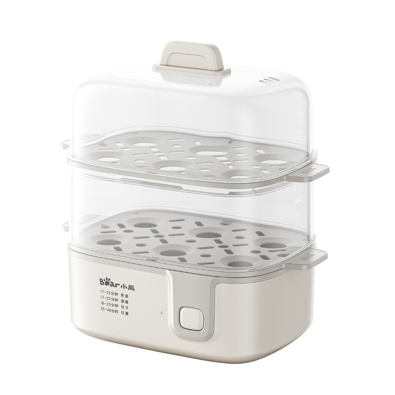 Bear Eierkocher & Elektrischer Dampfgarer, One-Touch-Multifunktions-Eierkocher, Ein-/Zweilagig, Kompakt für 1–2 Personen, Modell ZDQ-D12R3