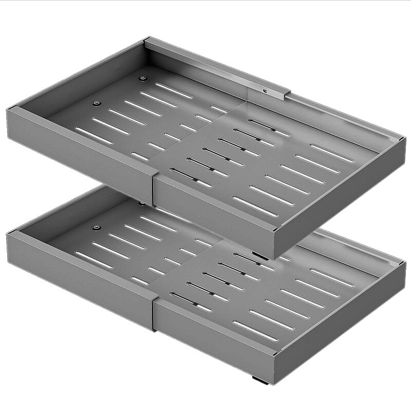 VIVREAL Extendable Storage Rack – 2 Gray Small Drill-free Pull-out Basket, Stainless Steel, Adjustable 12.6–20.5 in, Easy Installation, S32G*2, New Year Sale , Top gift picks