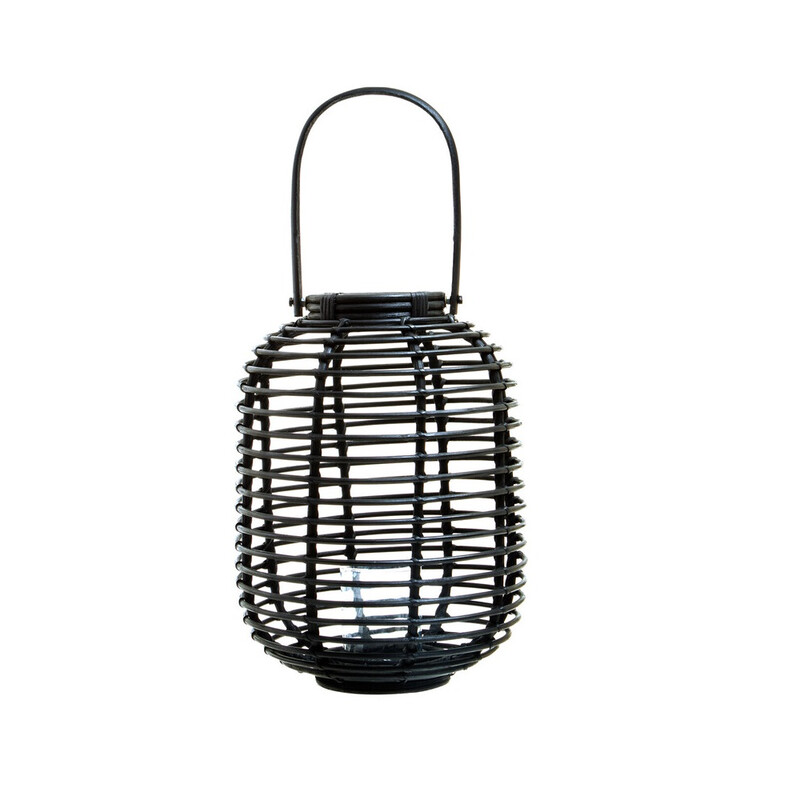 Premier Housewares nachhaltige kleine schwarze Rattan-Laterne in Naturfarbe, moderne runde KandelLaterne, vielseitig einsetzbar