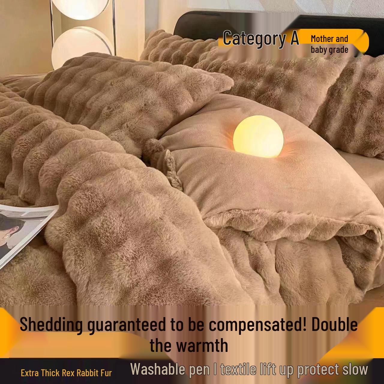 Class A Rabbit Hair Velvet Winter 4-Piece Bedding Set - Thickened Warm Coral Velvet Flannel.