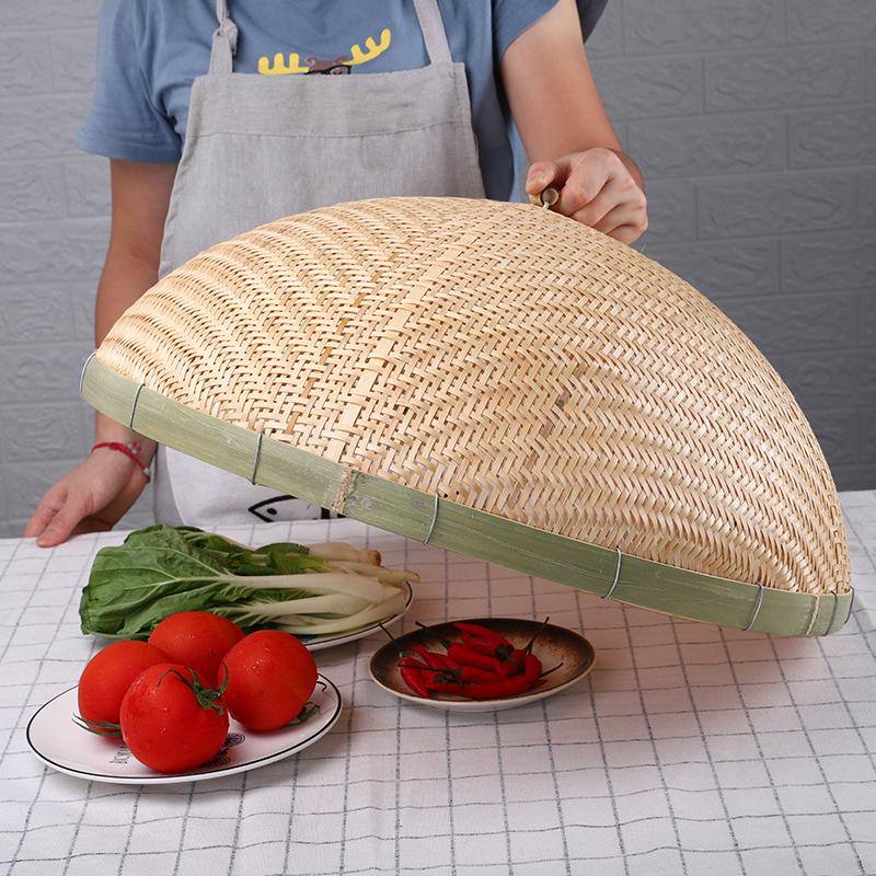 Bamboo Weave Fly-Proof Food Cover – Large Round Insect-Proof Dish & Table Cover for Leftovers, Chinese Style