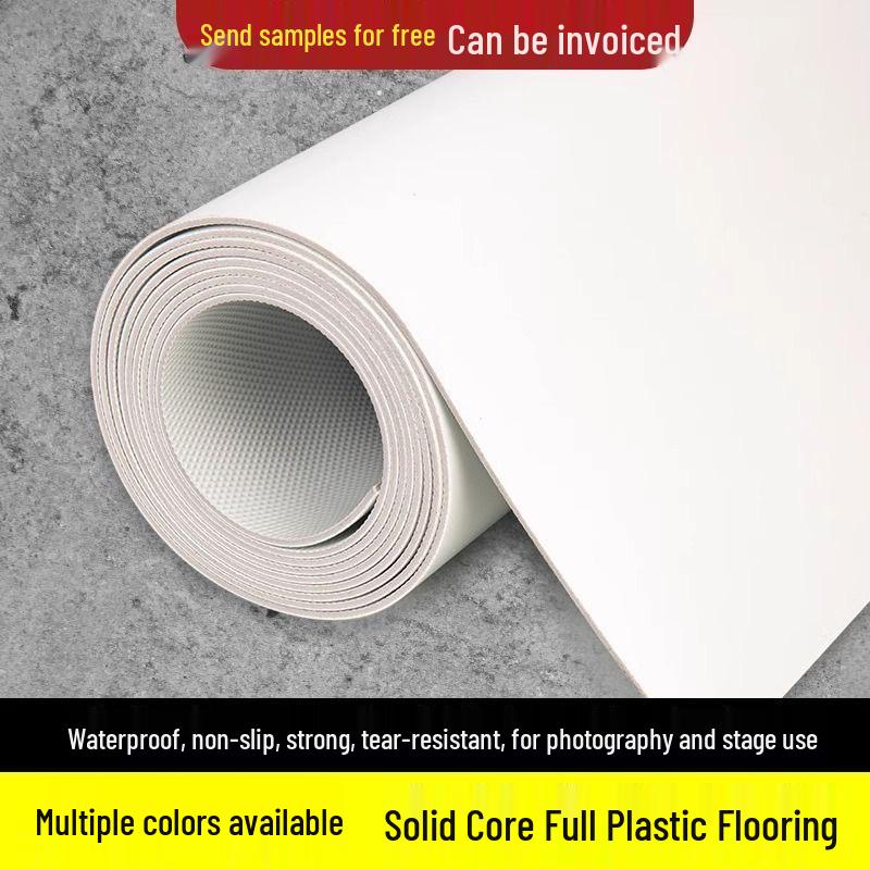Zuiver Witte PVC Vloerbedekking - Dikke, Slijtvaste, Waterdichte Cement Vloermat voor Commercieel en Huishoudelijk Gebruik zwart