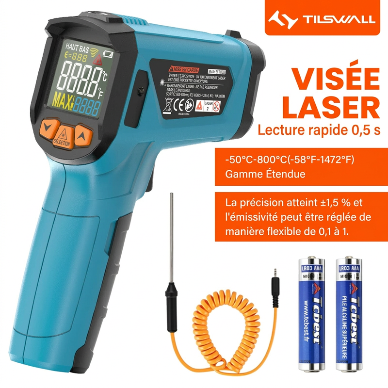 Digital infraröd termometer Laser Industriell temperaturpistol Ej kontakt med bakgrundsbelysning orange