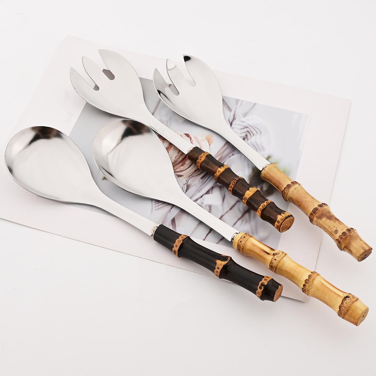 2/4pcs Black Bamboo Handle Dinnerware Set Mirror Stainless Steel Flatware Salad Fork Spoon Cutlery Set Western Kitchen Tableware