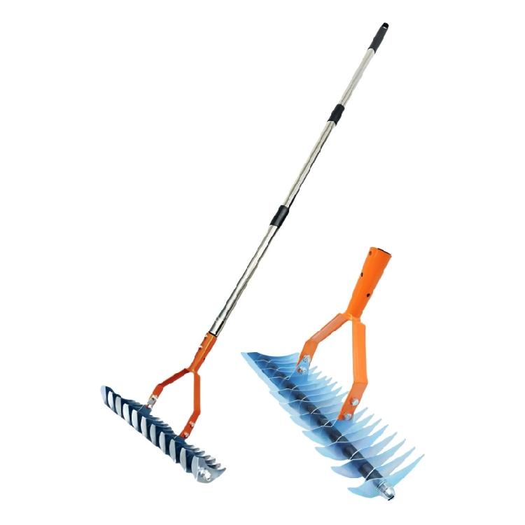 Profesjonalne grabie do suchej trawy 4 odpinane sekcje Długość 170 cm Wytrzymałe zęby ze stali nierdzewnej Do prac w ogrodzie na zewnątrz