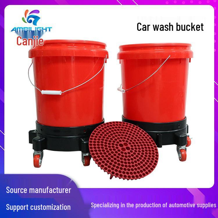 Pulley Car Wash Bucket with Sand & Gravel Filter - Large Capacity, Dual Use for Car Beauty Shops. red