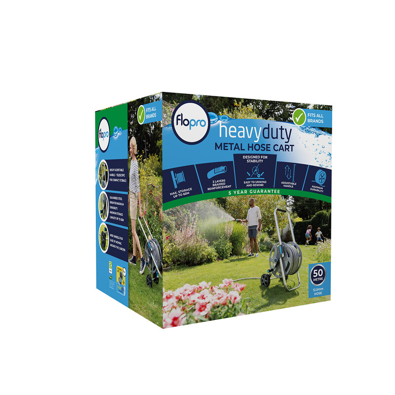 Flopro Metal HD Hose Cart Set with Everyday Hose 50m