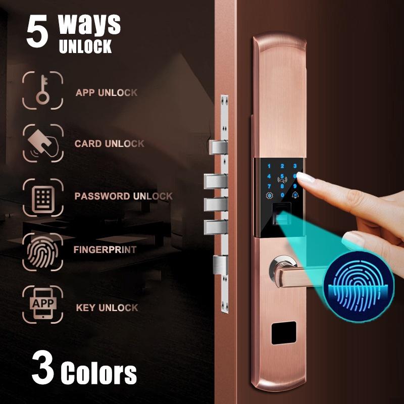 Fingeravtrykk Lås Digital Intelligent Smart Dørlås Aluminiumlegering Tyverisikring Passord IC-kort 4-i-1