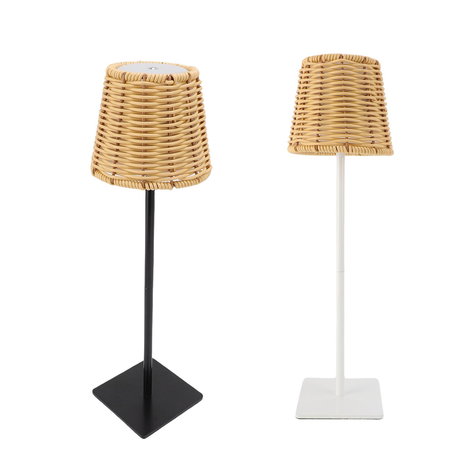 LED Bordlampe Trinnløs Dimming Berøringskontroll PC Rattan Vevd USB Oppladbar 3 Fargetemperatur LED Nattlys for Bar Svart