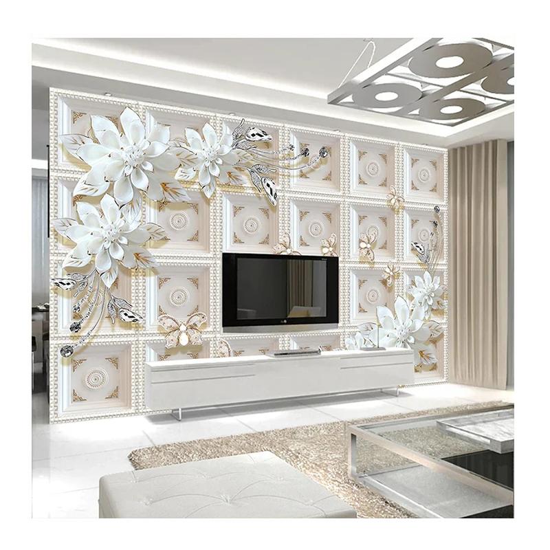 Custom 3D Wall Murals Stereoscopic Relief Jewelry Flowers Wallpaper Living Room TV Backdrop Mural
