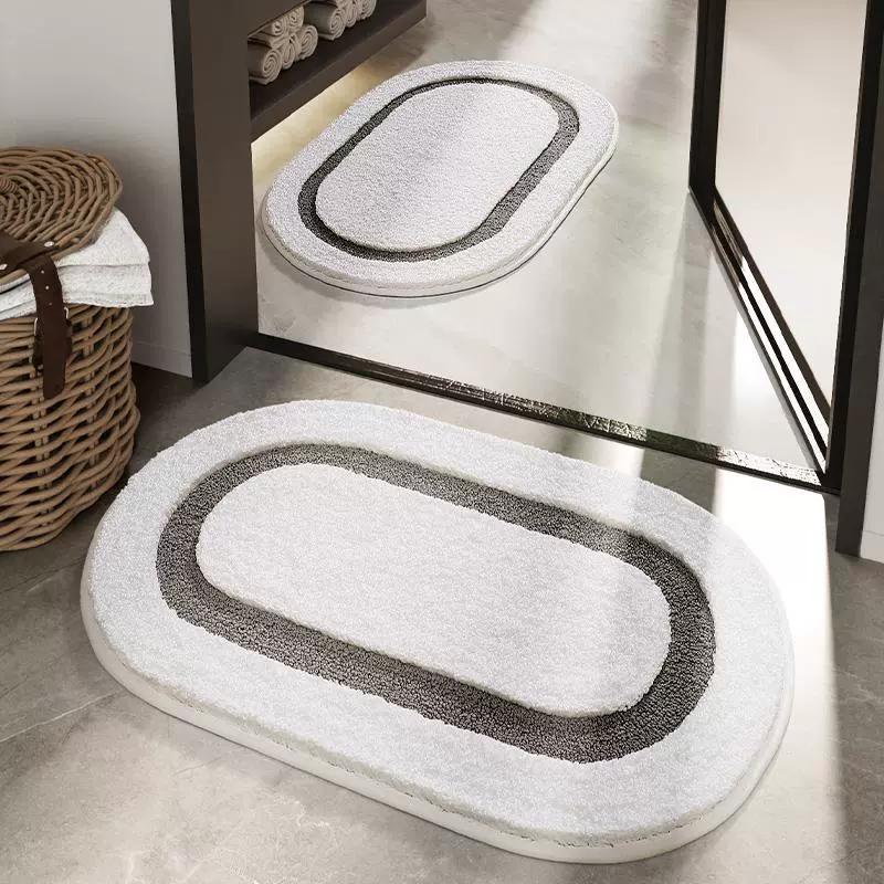 Luxury Flocked Bath Mat - Rectangular/Oval Non-Slip Bathroom Rug, Thick Super Fiber Absorbent Carpet for Modern Home Decor