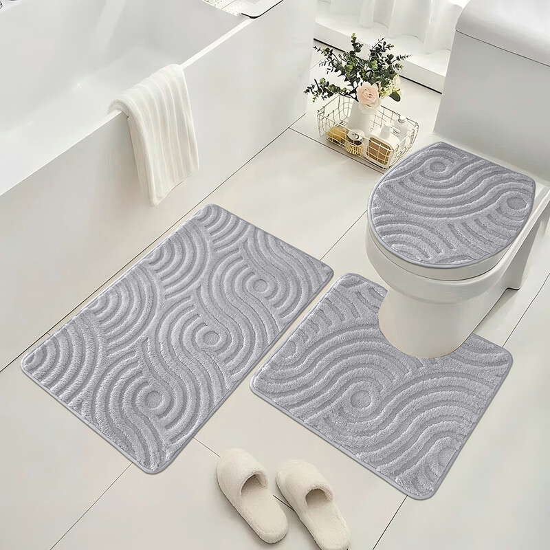 Soft Bathroom Carpet 3 Piece Bathroom Rugs and Mats Set Bath Mats Set with U-Shaped Toilet Floor Mat Rugs andToilet Lid Cover Mat,Wavy gray
