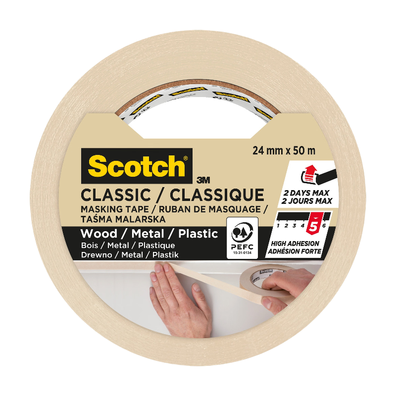 Scotch®Masquer – Ruban CLASSIC lignes droites Beige 50m x 24mm