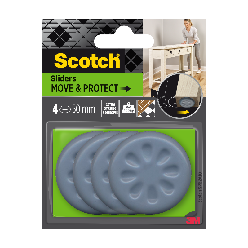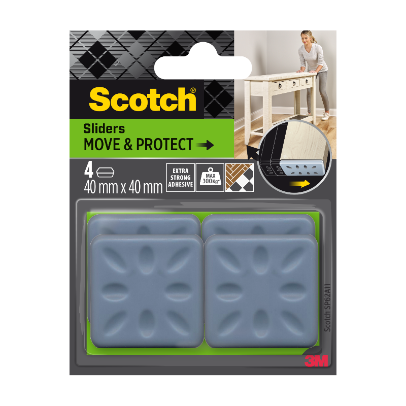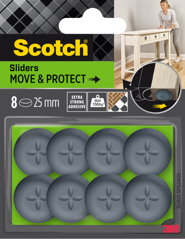 Scotch®Patin glisseur alvéolé adhésif Gris 40 x 40mm