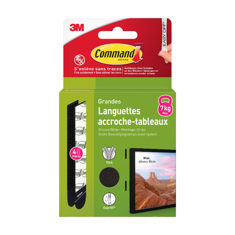 Command™Languette de fixation enlevable tableau Noir Grand modèle
