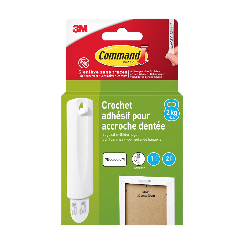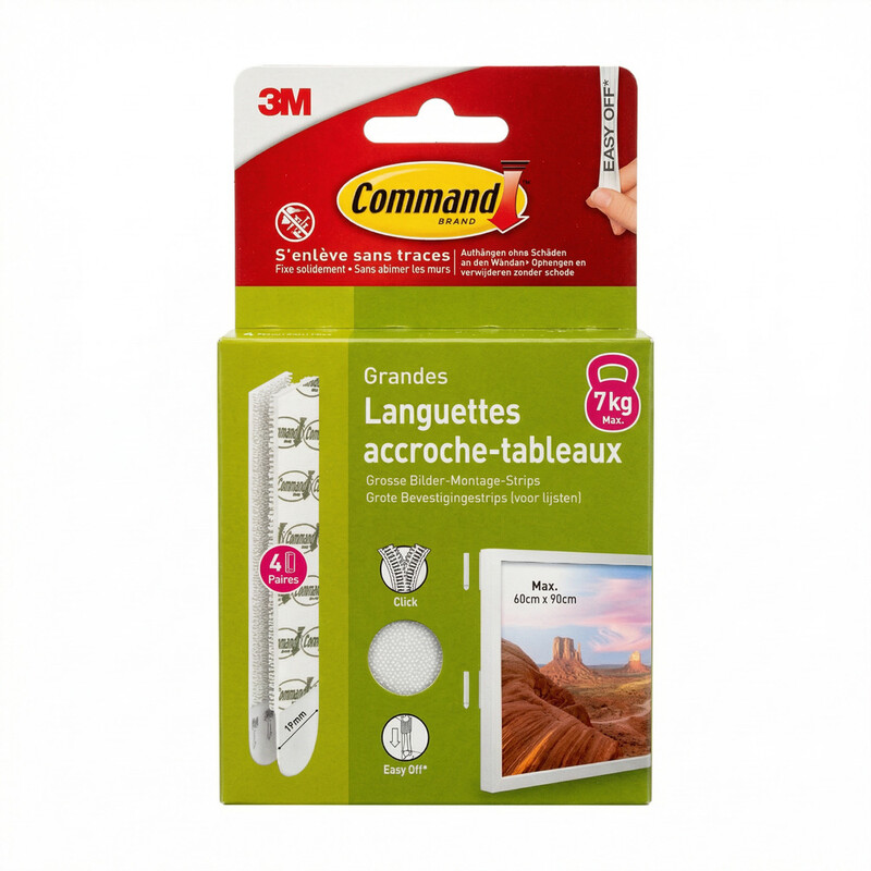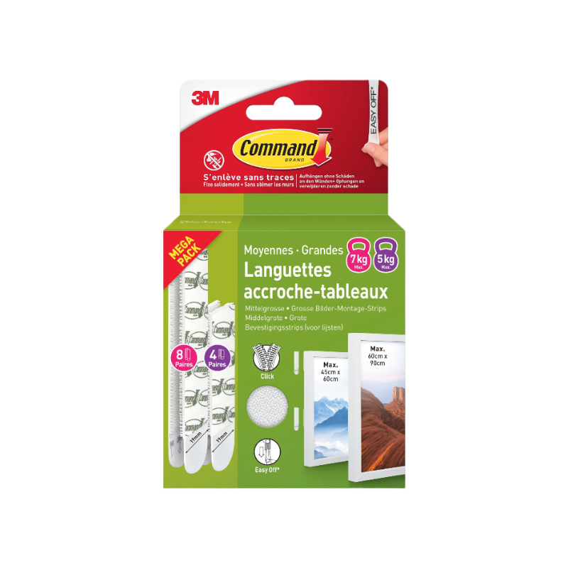 Command™Lot languettes de fixation enlevable tableau - Lot de 8 paires Blanc XL 9kg