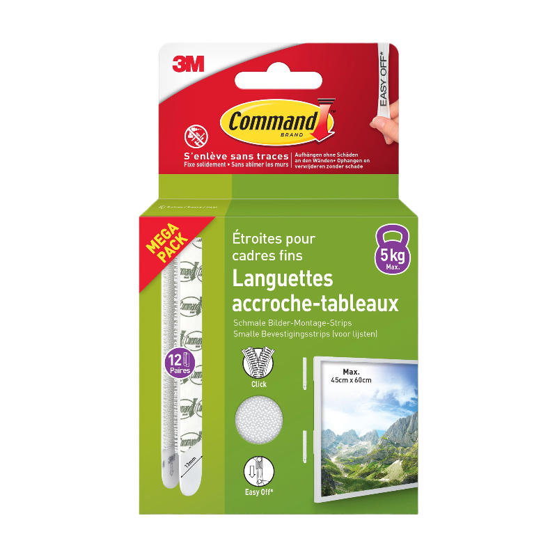 Command Lot de languettes de fixation amovibles pour tableaux - Lot de 12 paires Blanches pour cadres fins
