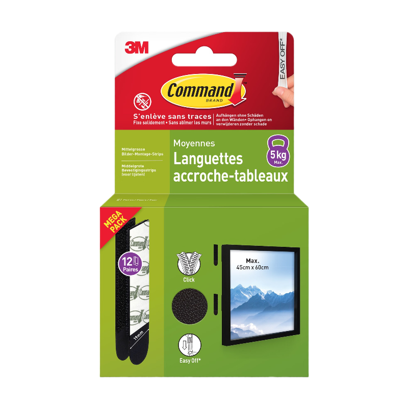 3M Command™ Lot de bandes adhésives amovibles pour accrocher des tableaux, blanches, 4 paires (taille moyenne) + 8 paires (taille grande)