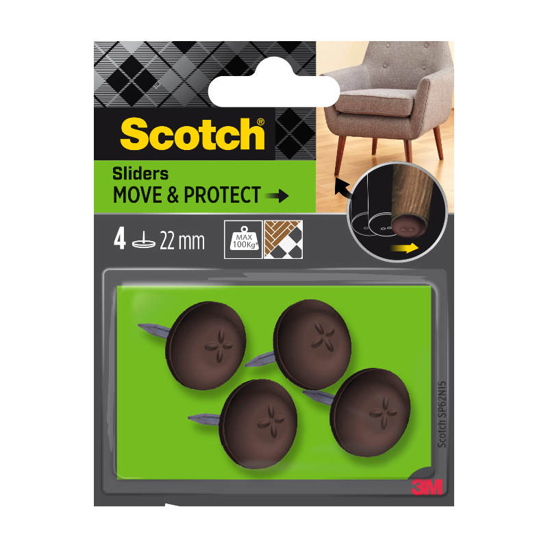 Scotch® Move and Protect Lot de 4 patins glisseurs alvéolés à clouer marron - Ø 22 mm