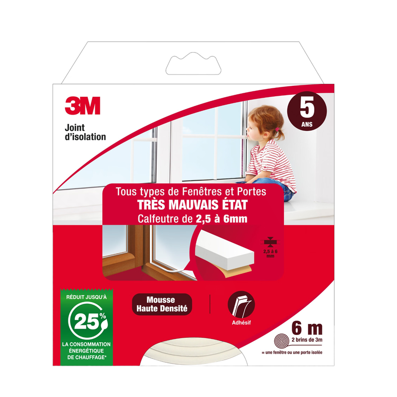 3M Joint en mousse pour portes et fenêtres, blanc, 6 m