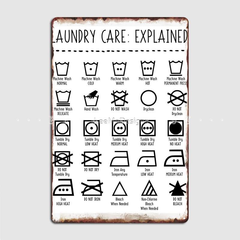 Wäsche-Symbole erklärt Metallschild Poster Club Haus Wand Personalisierte Schilder Blechschild Poster