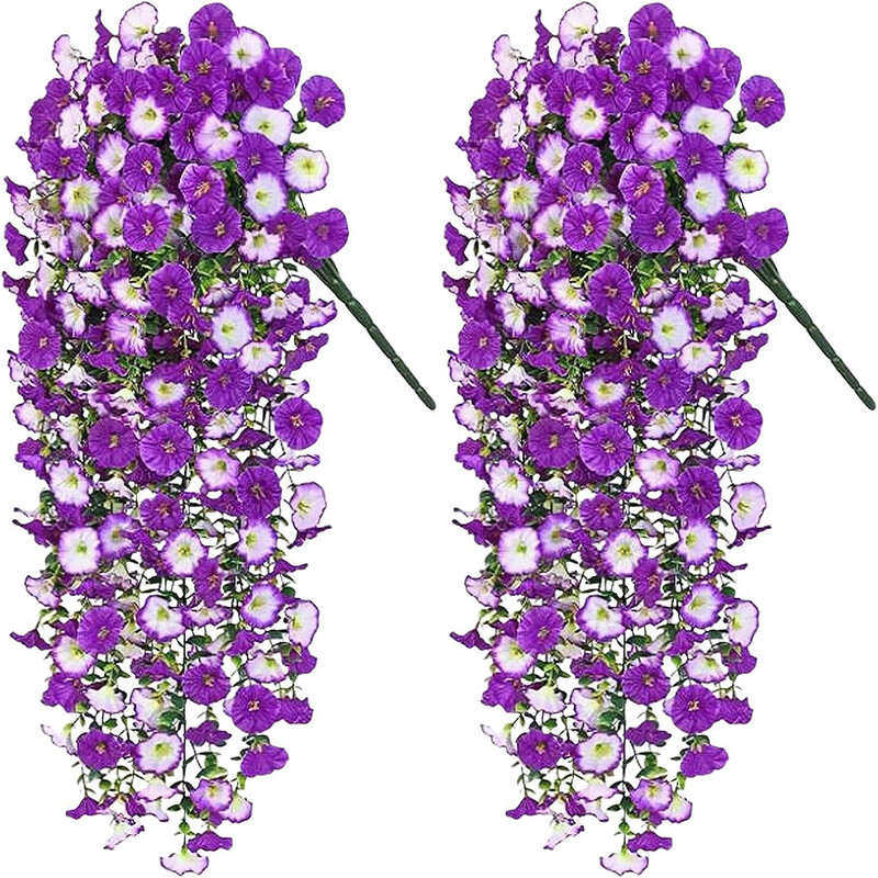 4 Stück 30 Zoll/76 cm Künstliche Blumen für den Außenbereich, realistisch hängende Kunstblumen aus Seide, Petunien, künstliche Blumen für Veranda und Terrasse (Mix Lila)