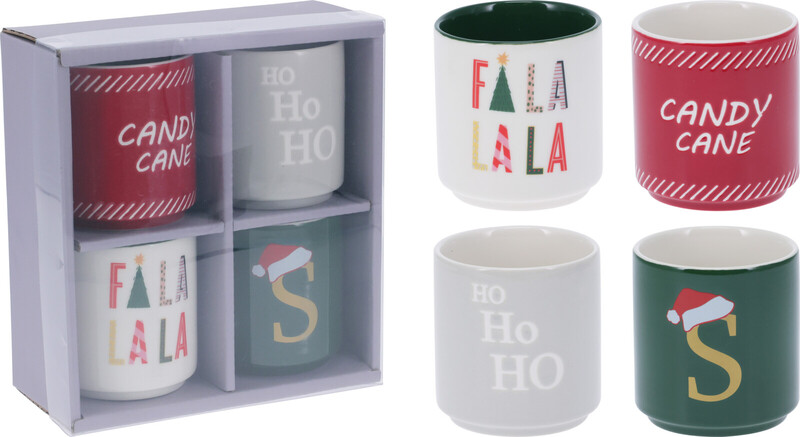 Koopman Kerstmok Set - Nieuwe Bone Porselein, 4 stuks, 300 mL