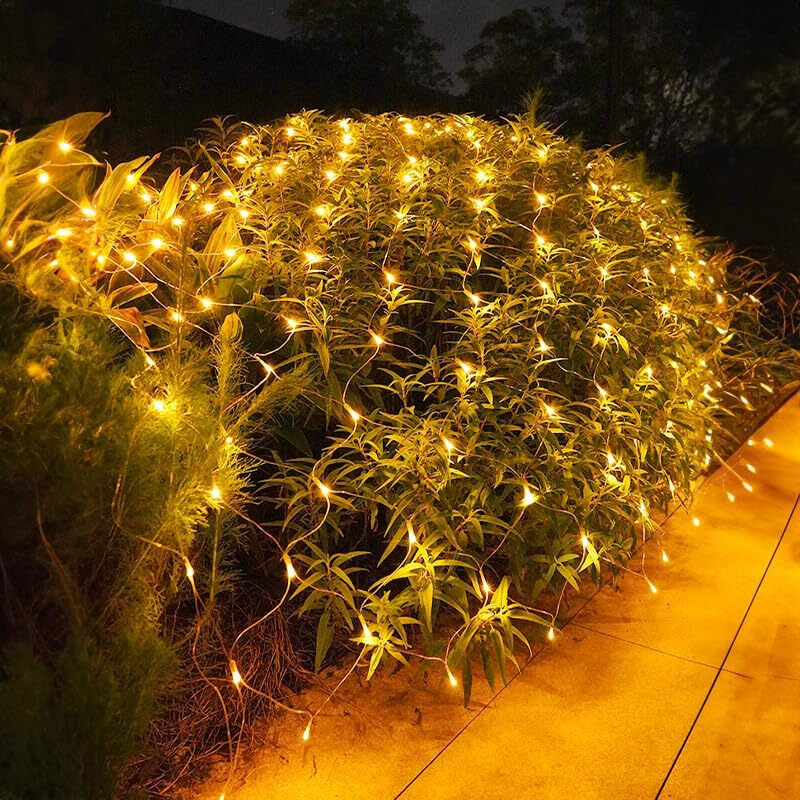 Yakimz LED-Lichternetz für den Außenbereich, 2 x 2 m, 200 LEDs, Warmweiß, wasserdicht, 8 Modi, für Sträucher, Garten, Zimmer, Balkon
