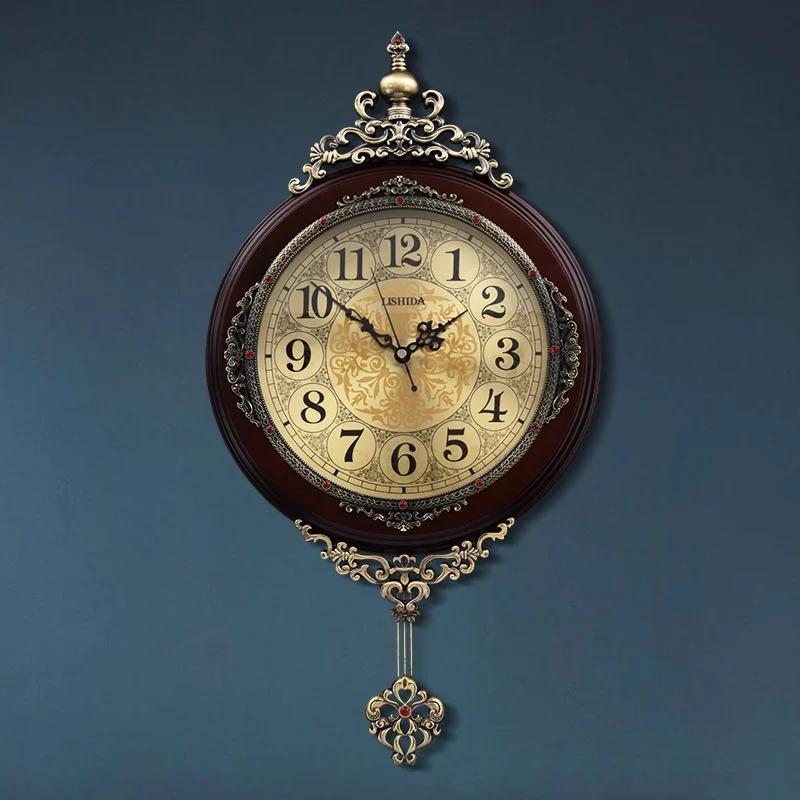 Retro Europeisk Stil Veggurklokke Klokke Stue Lydløs Pendelklokke Elegant Smak Familiegave Kunstdekorasjon