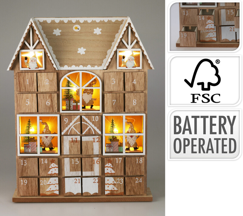 Koopman Adventskalender - Natuurlijk & Wit, 29 x 7 x 37 cm
