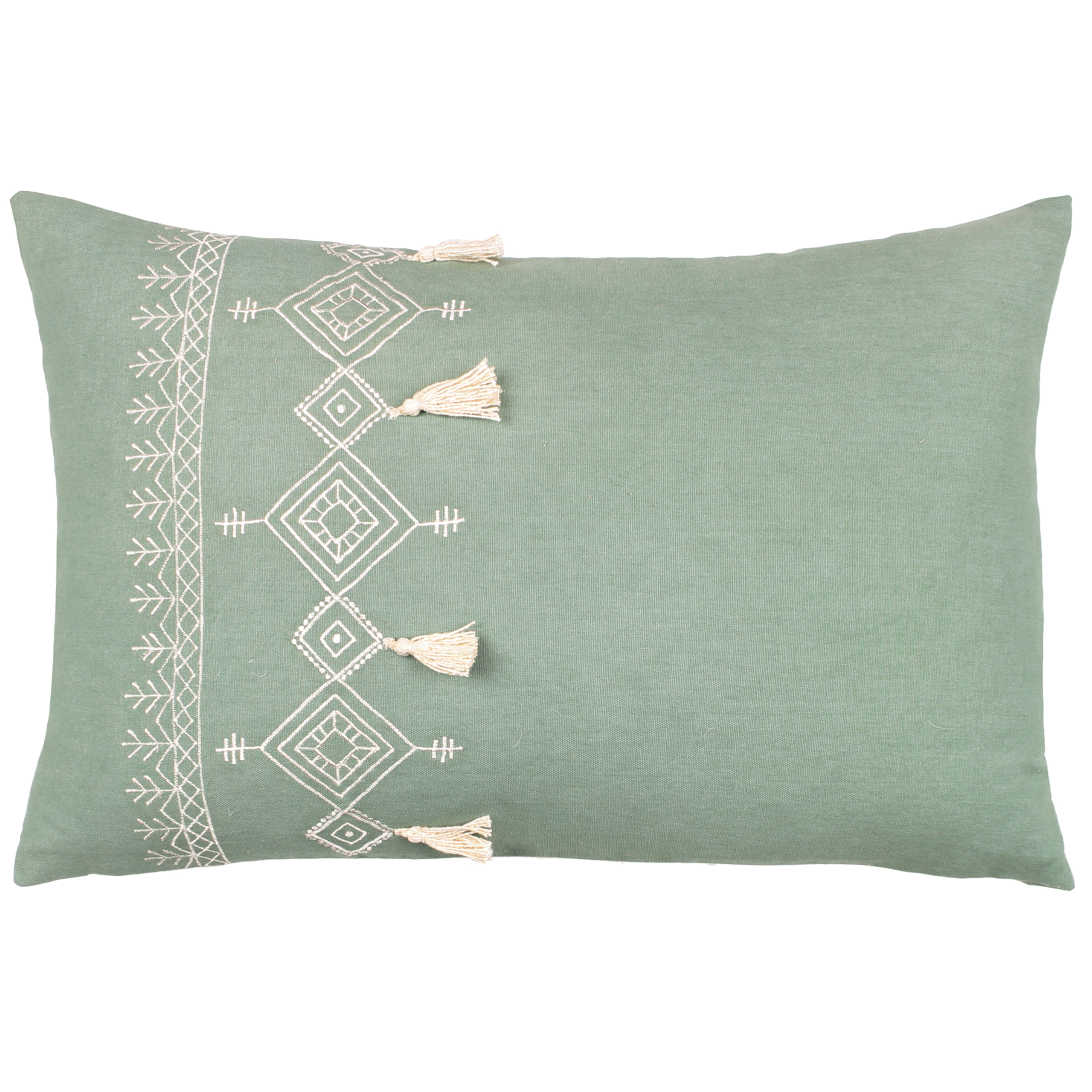 furn. Pritta Cotton Embroidered Tasselled Feather Filled Cushion - Green - One Size | furn. Sale | Discount Designer Brands
