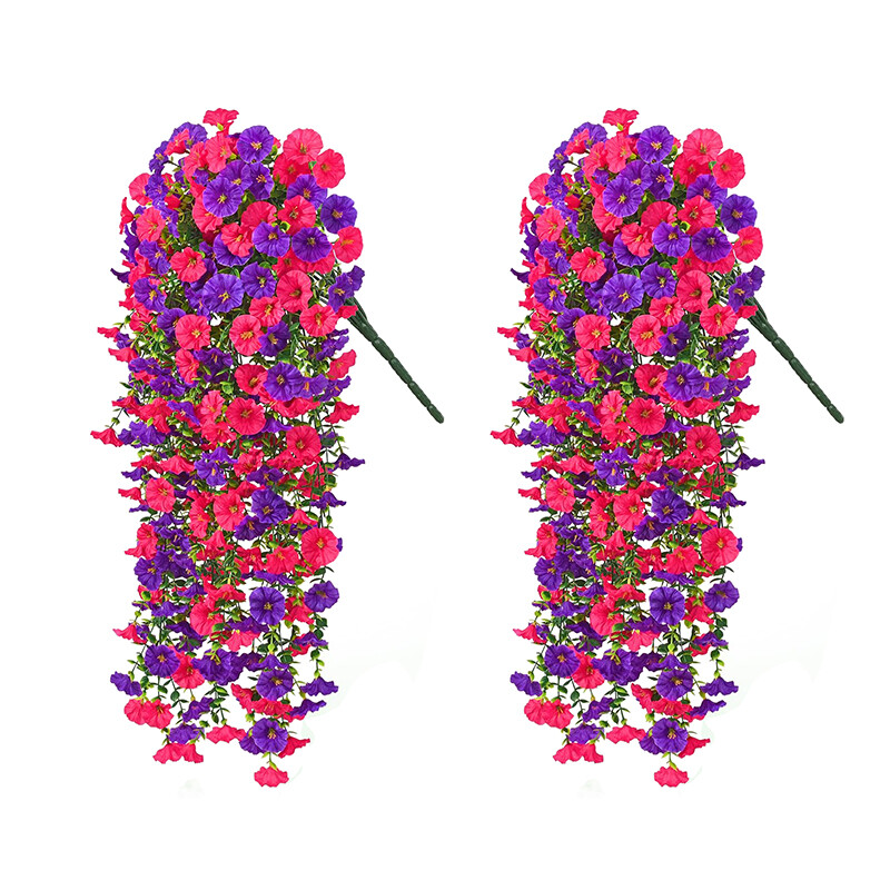 4 Stück 30 Zoll/76 cm Künstliche Blumen für den Außenbereich, realistische hängende Kunstblumen aus Seide, Petunien, künstliche Blumen für Veranda und Terrasse (lila & rosarot)