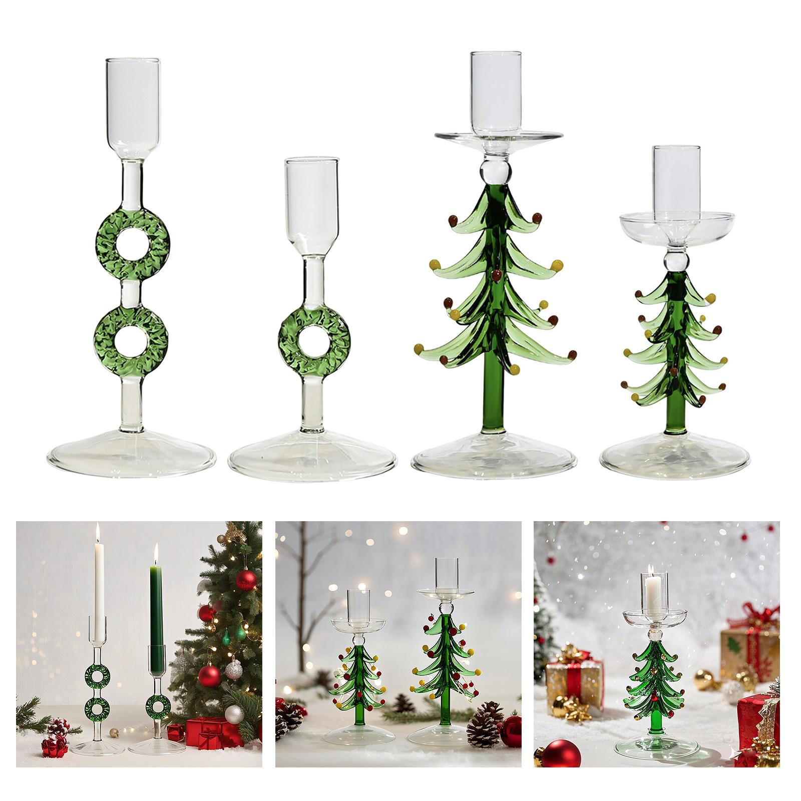 3 Piece Set Glass Candle Holders Christmas Tree Design Handblown Borosilicate for Taper Candles Stable Base Holiday Decor