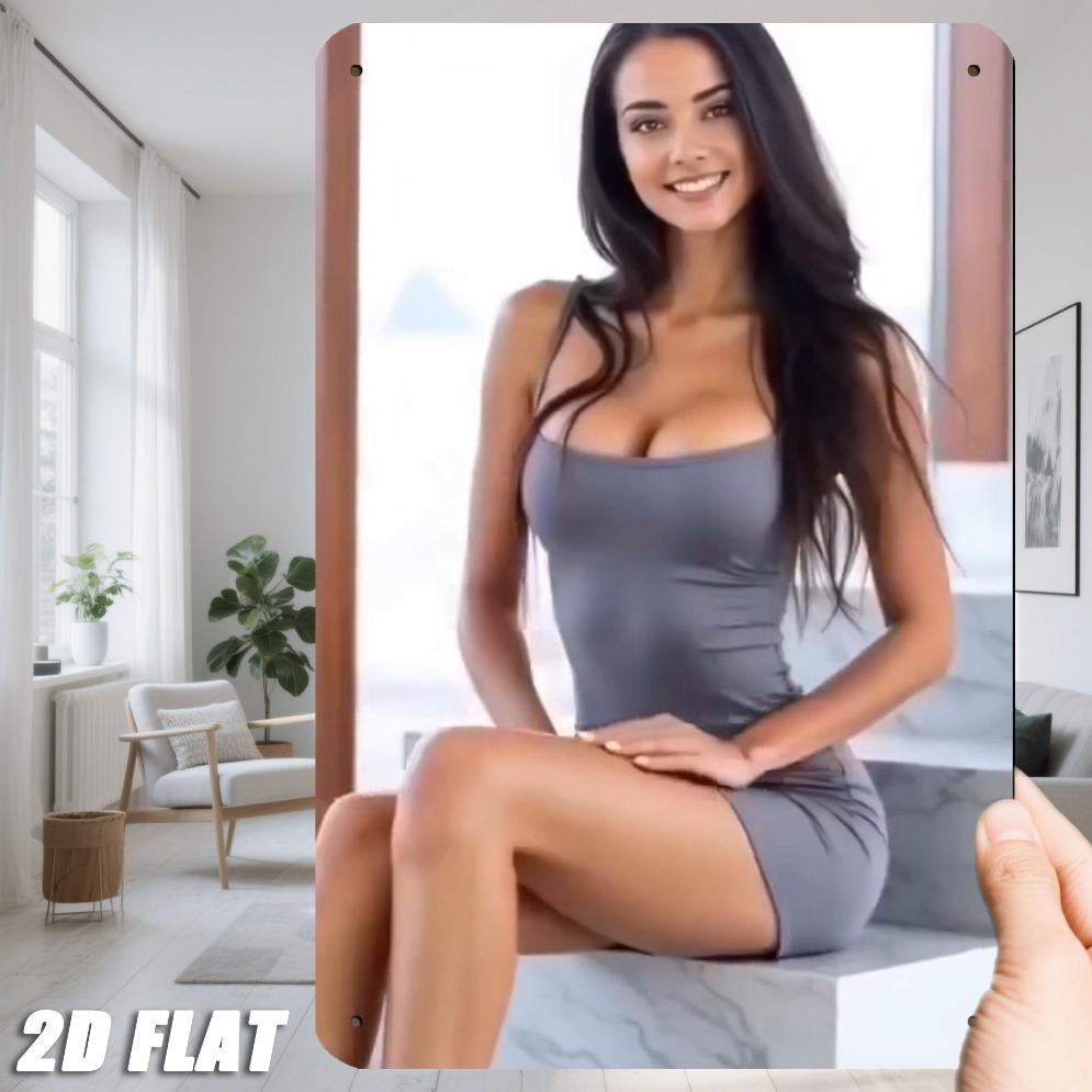 JIT Retro Jern Metall Skilt 8 tommer * 12 tommer Menns Hule Garasje Hjemmebar Kafé Veggdekor - 2D Flat 1 stk Langt Hår Slank Sittende Trinn Modell Tre
