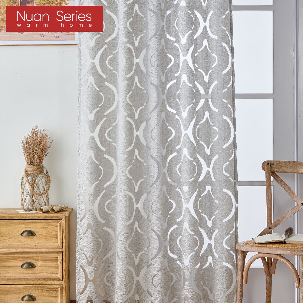 1 stk Nuan-serien 10% mørkleggende mote allsidig tyll personlig blomster jacquard ren gardin for kjøkken stue soverom vindu hjemmedekor Grå