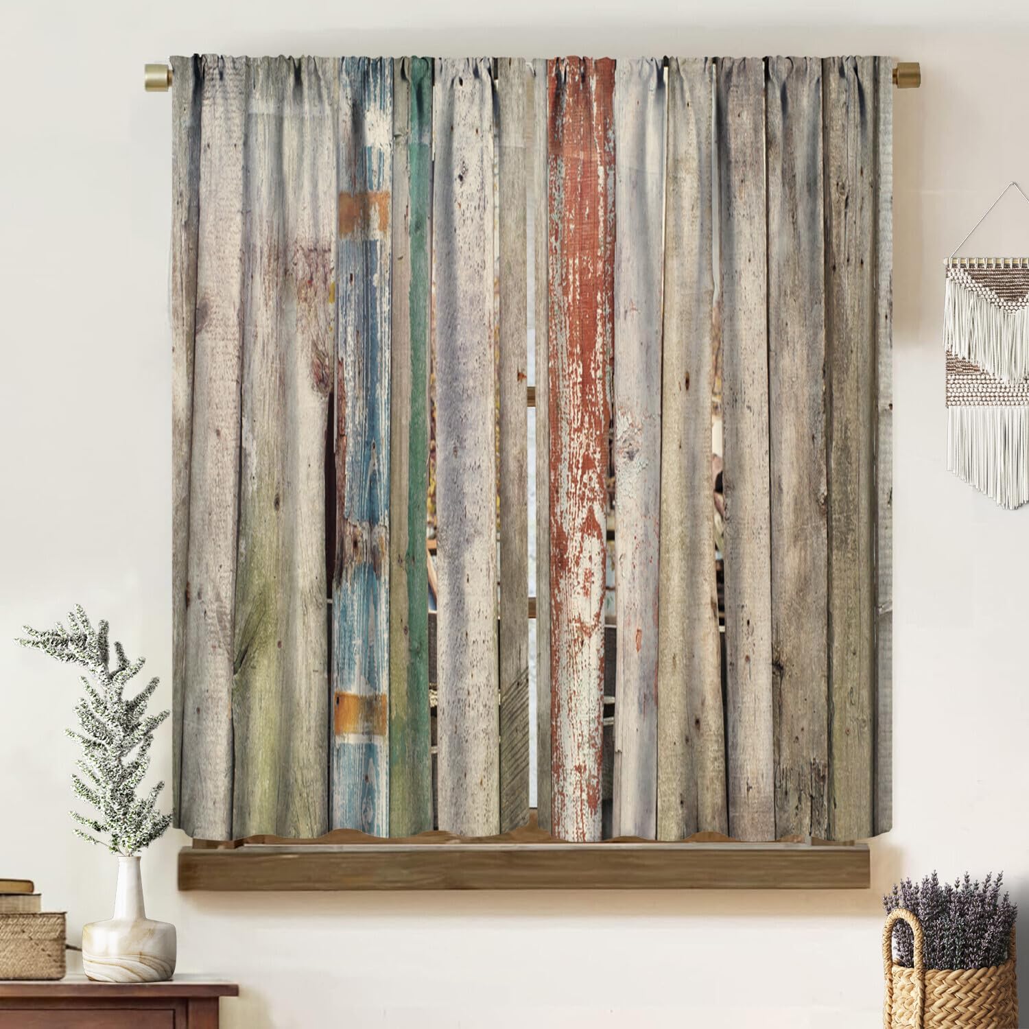 Oude Houten Verduisteringsgordijnen Bruin Retro Rustiek Schuur Boerderij Print Verduistering Stangzak Raambekleding Gordijnen voor Slaapkamer Li