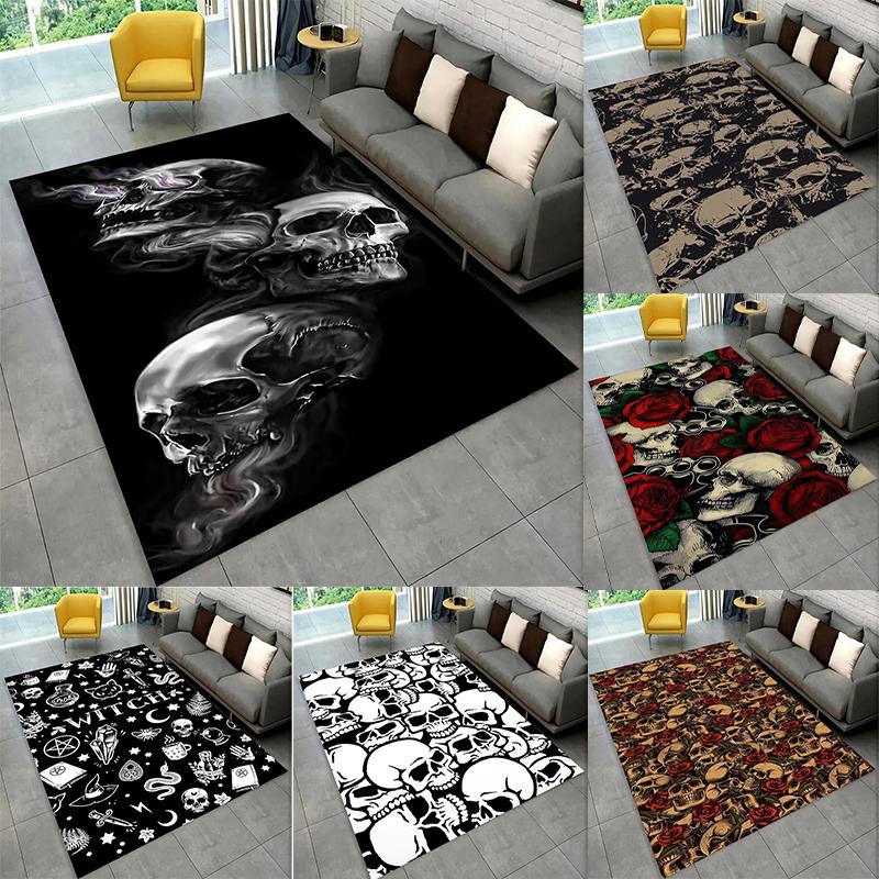 Skrekk Hodeskalle Mørk Gotisk Hekseri Stil Områdeteppe Subkultur Dekorativt Teppe Dørmatte Stue Soverom Sofaområde Lekerom