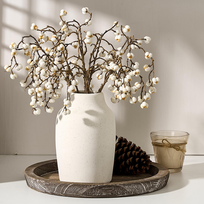 1pc/17.8cm7in, Rustic Farmhouse Ceramic Flower Vase 7 Inch Boho Terracotta Vase for Home Decor Living Room Table Shelf Fireplace Decor Farmhouse White