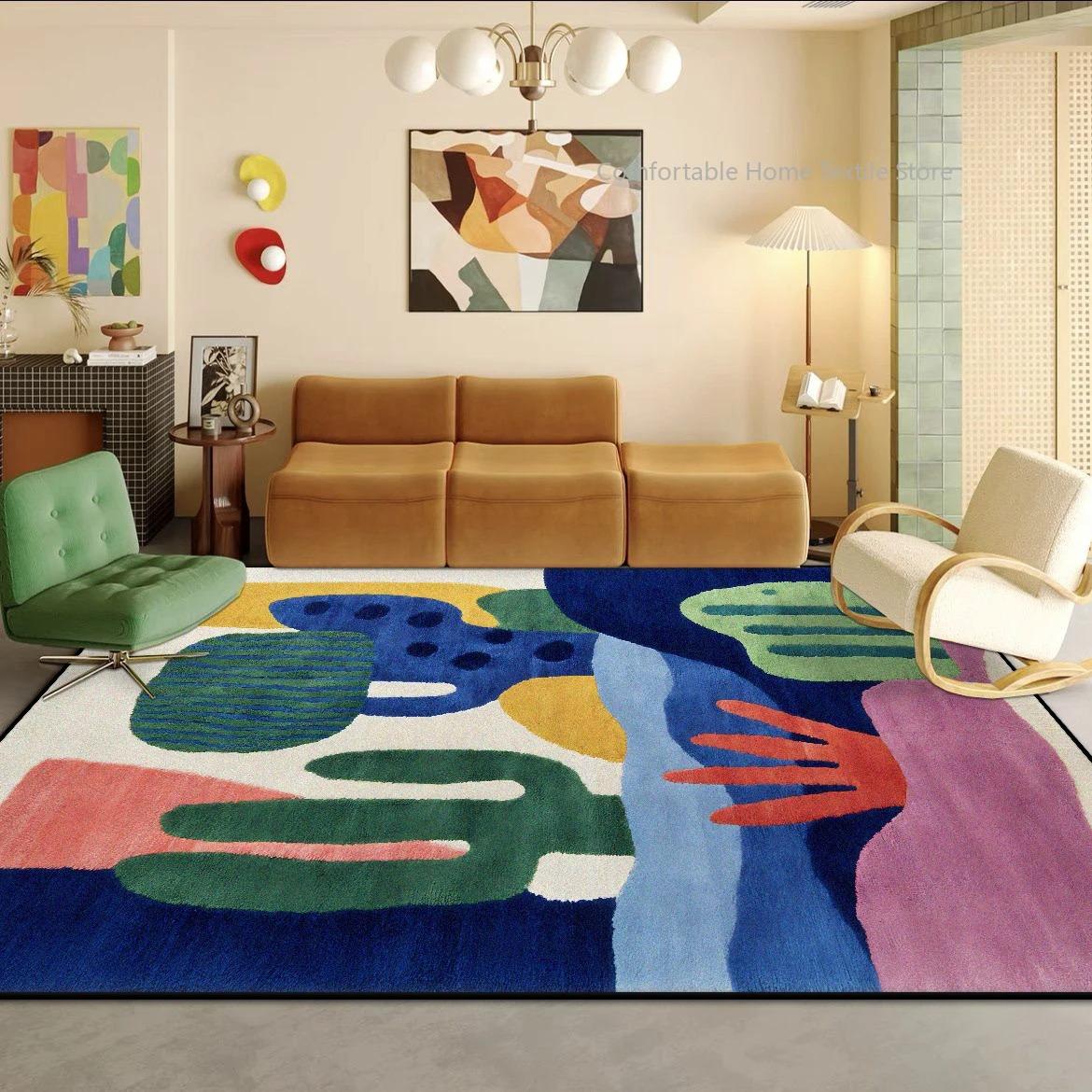 Nowoczesny Abstrakcyjny Styl Dywan Dekoracyjny do Salonu Duży Rozmiar Miękki Artystyczny Dywan do Dekoracji Sypialni Łatwe Czyszczenie Mata pod Stolik