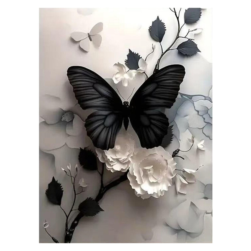 JU7CER Schmetterling Blumen 5D Diamant-Malset - Schwarz für Erwachsene | Wanddekoration Bastelset 12×16 Zoll (30×40 cm)