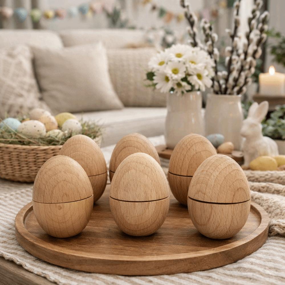 Multi-Purpose Wooden Easter Eggshells Unfinished Egg-shaped Storage Box Holiday Decor