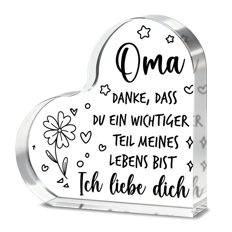 Alphynix Herz-Akryl-Plakette, 1 Stück, „Oma, danke, dass du ein wichtiger Teil meines Lebens bist“, Geschenk für Oma mit Blumen- und Sternmotiven, Oma-Dankesgeschenk