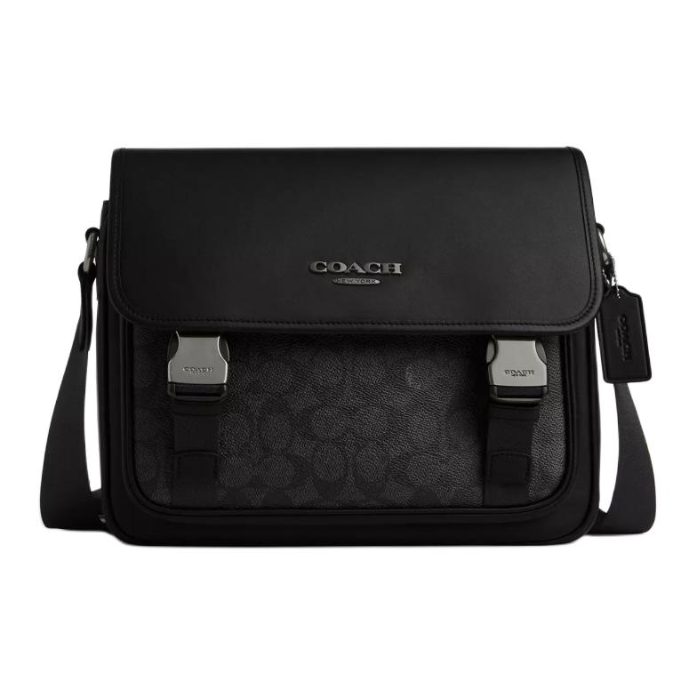 Coach Racer 28 Logo de la Marque Bandoulière Réglable Toile Enduite Cuir de Veau Lisse Sac Messager Sacs Homme Charbon CT716-QBMI5