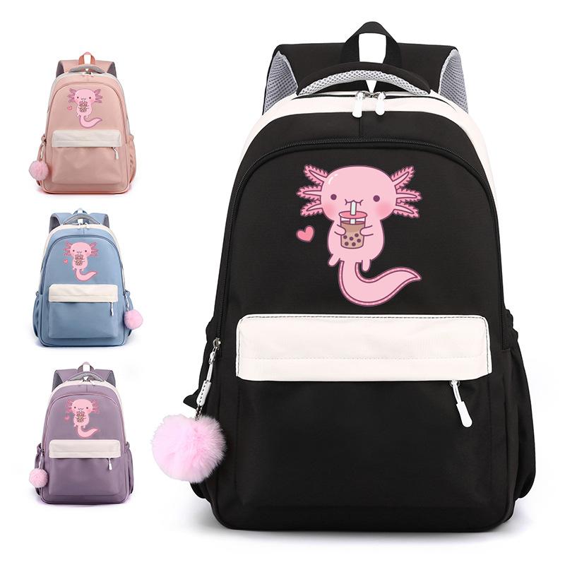 Schattige Kawaii Axolotl rugzakken voor zowel mannen als vrouwen Axolotl schooltas schattige cartoon rits rugzak grote capaciteit schooltas zwart