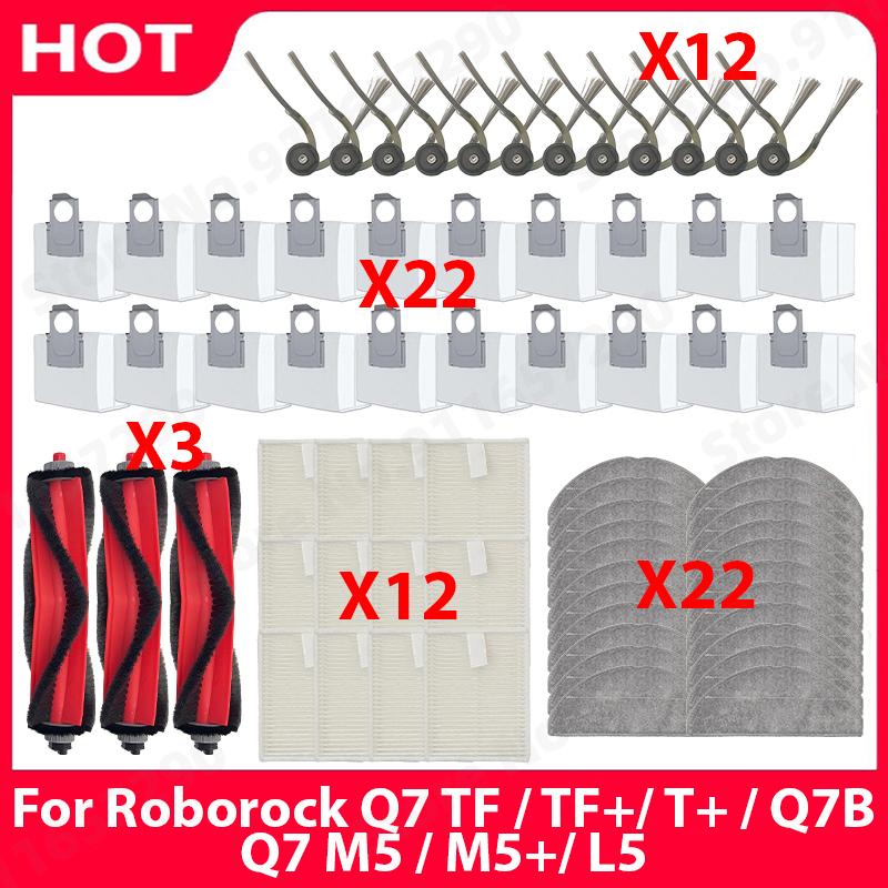 Passar för Roborock Q7 TF / TF+/ T+ / Q7B / Q7 M5 / M5+/ L5 Huvudborste Sidoborste Filter Hepa Moppdukar Dammbehållare Tillbehör Del