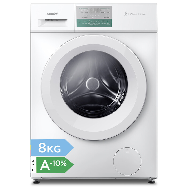 Comfee freistehende Waschmaschine, 8 kg Füllmenge, Energieeffizienzklasse A (10 %), Dampfpflege, BLDC-Motor, Woolmark, Touch-Display, Weiß - CFP03EW80W-HR Weiß